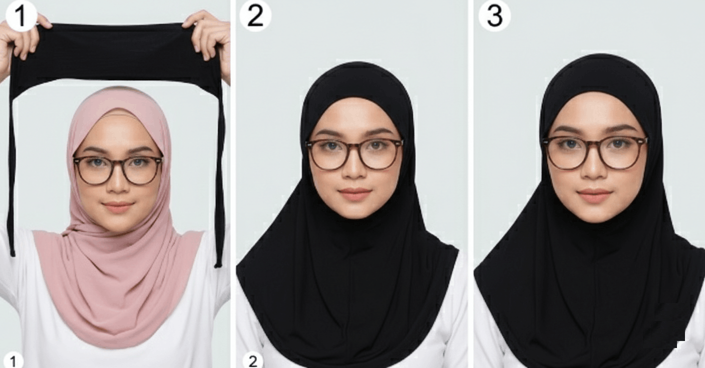 If your hair bun is too high, it pulls the fabric of your hijab upward. This lifts your glasses off your nose.